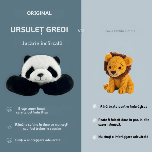 Indiferent dacă ești la birou, în pat sau pe canapea, Ursulețul Greoi îți oferă ceea ce este mai prețios: un moment de liniște – chiar atunci când ai cea mai mare nevoie.