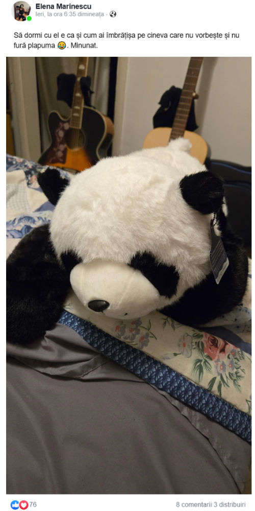 De ce aveți atât de puține comentarii pozitive? Ursulețul nostru a fost scos azi din locker și este absolut minunat!! Este moale și plăcut, perfect de purtat în brațe. La noi acasă e deja război – cine o să doarmă cu el... Am stabilit: o noapte da, o noapte nu, e rândul meu 😅😅
